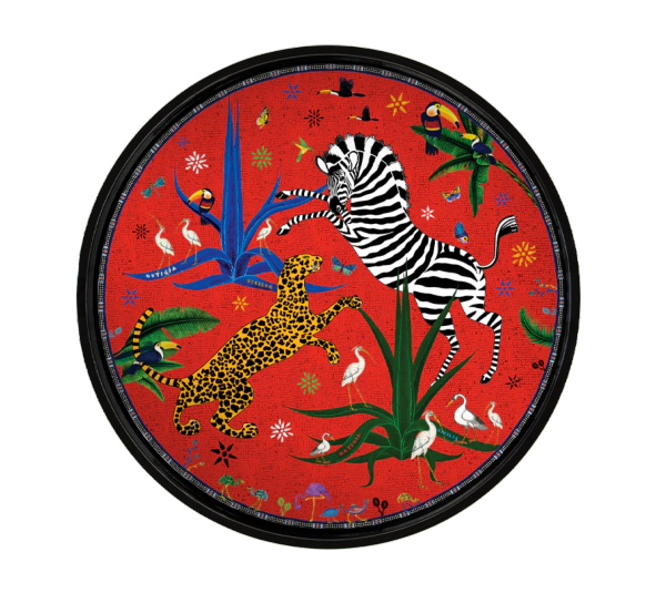 * Les flacons en verre et le pot des bougies parfumés sont estampés d’images évoquant léopards et palmiers.